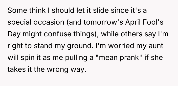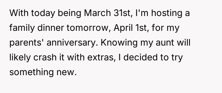 AITA for charging an “entry fee” for a family dinner on April 1st, leading my aunt to think it was an April Fool’s joke?