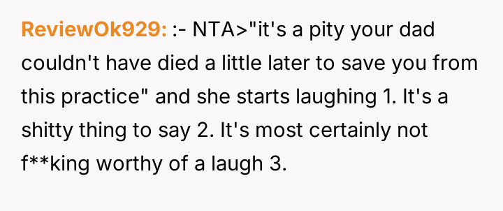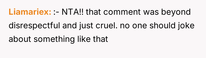 Given the deeply painful context of recent bereavement, was the OP justified in reacting immediately by confronting the assistant and leaving the practice, or should they have handled the situation with more composure, even when faced with such a shocking remark? Where does the responsibility lie: with the grieving individual to manage their response, or with the authority figure to maintain professional and compassionate behavior?