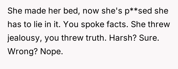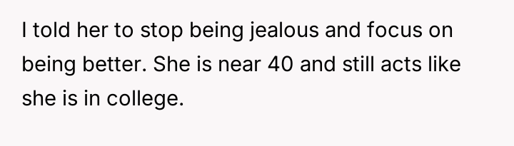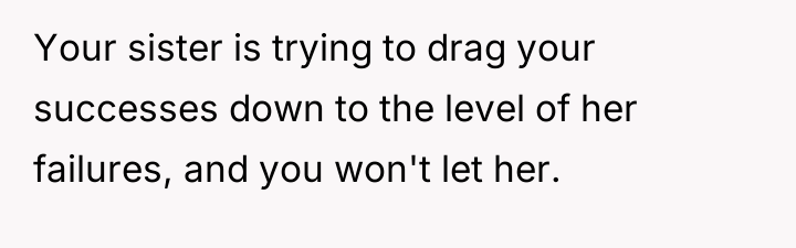 As renowned family therapist Dr. Harriet Lerner explains, “The first casualty of unresolved anger is the relationship.” This situation clearly illustrates how suppressed resentment—from the sister's past actions and current jealousy, and perhaps the OP's long-standing frustration with her sister's dependence—erupts when personal boundaries are continually tested.