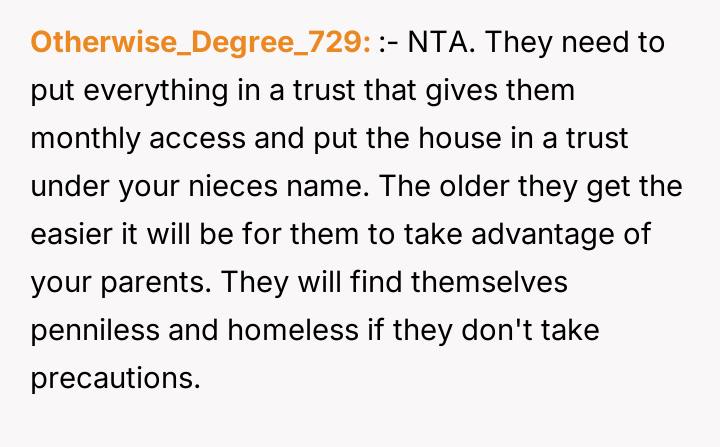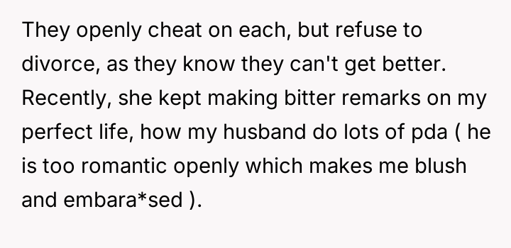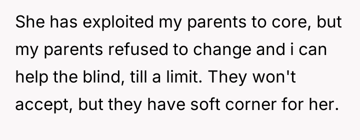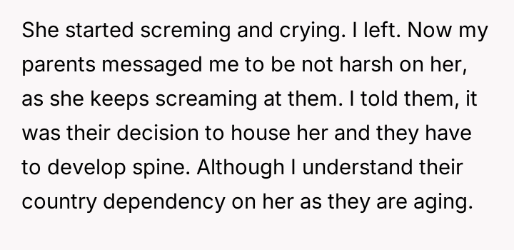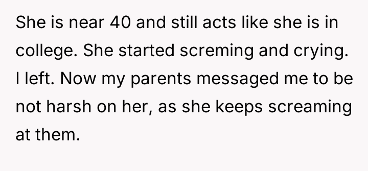 The OP’s actions were an understandable reaction to prolonged emotional harassment, but the delivery was inappropriate for constructive resolution. A more effective approach would have been to strictly enforce behavioral boundaries without detailing character assassinations. For instance, the OP could state, "I will not discuss my social media or your marriage. If you bring it up again, I will end the call/visit." Furthermore, the OP has already taken positive steps by planning for her niece’s future and offering her parents alternative housing, thus establishing practical support without enabling the sister's negative patterns.