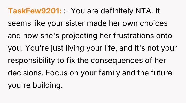 AITAH for telling my sister it isn't my fault , that i planned my life and she didn't