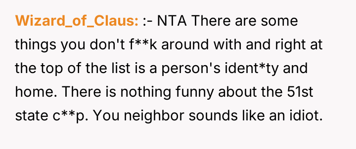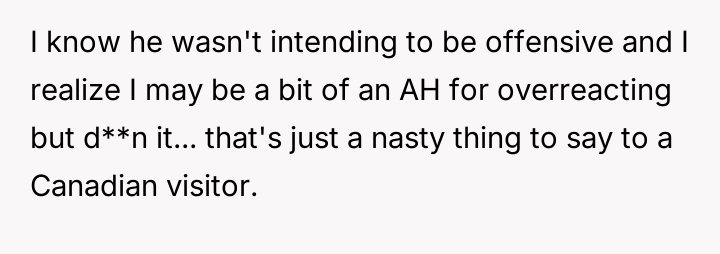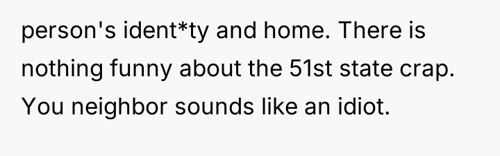 AITAH: Canadian in the USA here... lost it on a neighbor after hearing the 51st State "Joke" for the 50th time.