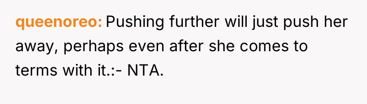 The OP's immediate reaction to the scratches, while logical from an external viewpoint, bypassed her sister's established emotional defenses. While the OP was not wrong to observe the evidence, a more effective approach in the future might involve non-judgmental support rather than immediate challenge, especially when the topic intersects with deeply held religious beliefs. Future action should focus on creating a safe space for Leah to voice her fears without consequence, rather than presenting evidence that forces Leah into a corner.
