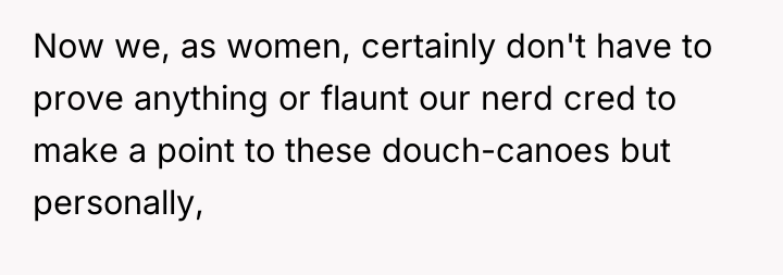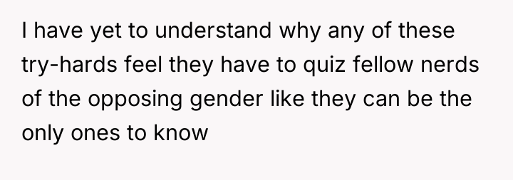 As renowned researcher Dr. Brené Brown explains, “Boundaries are the distance at which I can love you and me simultaneously.” In this situation, the OP attempted to set a boundary when the employee initiated an inappropriate quiz about her knowledge and then escalated by using abusive language. The employee, motivated by gatekeeping behavior common in certain fandoms, violated this boundary by refusing to accept the OP's competence based on her presentation.