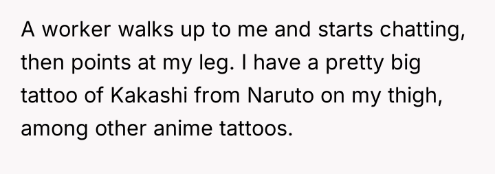 But beneath the lighthearted tradition lies a moment charged with misunderstanding and judgment. When a stranger questions the authenticity of her love for anime based on her gender, she stands firm, her tattoos telling a story of devotion and identity that no skeptic can erase. This is a tale of resilience, pride, and the quiet power of knowing one’s truth.
