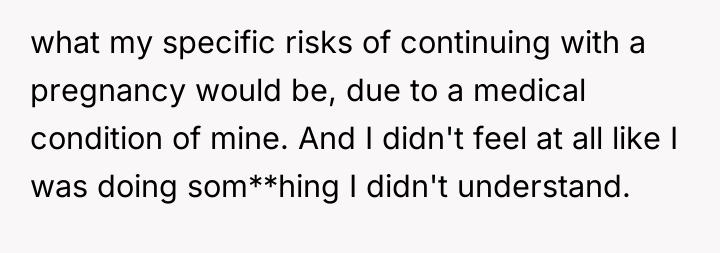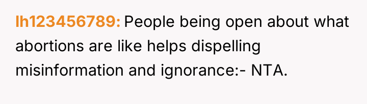 The original poster (OP) became emotionally invested in defending the informed nature of abortion decisions after a coworker made generalizing and critical statements about the process in a casual work setting. The central conflict lies between the OP's belief in the right to share personal, factual experience when challenged on a sensitive topic, and the coworker's expectation that such personal medical history should be kept private, especially in the workplace.