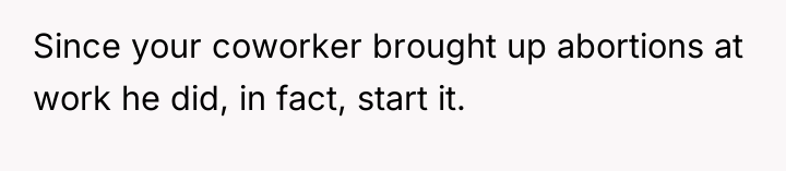 AITA for talking frankly about my abortion, when my coworker was making some wild generalizations about what abortions are like?