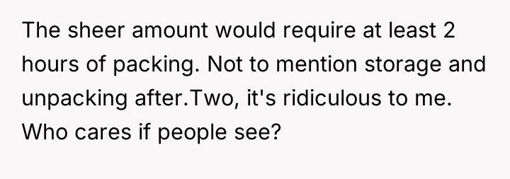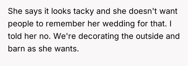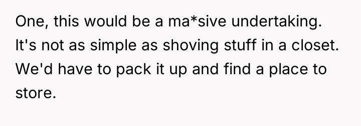 The OP has clearly established boundaries by agreeing to decorate the outdoor and barn areas specifically for the wedding and offering to change the bathroom towels. Their refusal to relocate extensive personal collections from their private living space is a defense of personal autonomy and territory. The sister, however, is exhibiting entitlement, perhaps fueled by the perceived 'free' venue. While hosts must be gracious, guests do not have the authority to dictate the permanent or semi-permanent contents of a host’s private residence, especially when the functional wedding spaces are already being accommodated. Furthermore, involving parents escalates the situation from a negotiation between siblings to a conflict over parental authority.
