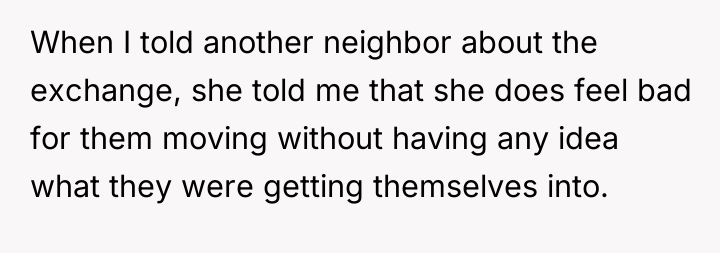 AITA for telling the new neighbors that they got what they paid for, including being shunned by the neighborhood?