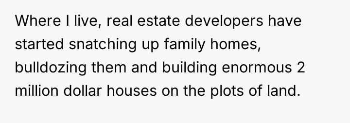 In a neighborhood once rich with history and the tender love of generations, a silent battle unfolds. The cherished family home, with its sprawling garden that once blossomed with laughter and community spirit, now stands overshadowed by the cold, towering presence of a developer’s monument—an unfeeling giant that blots out the sun and the memories it once nurtured.