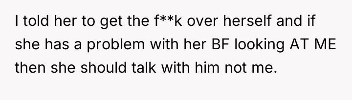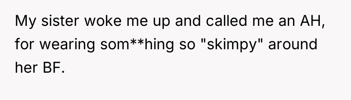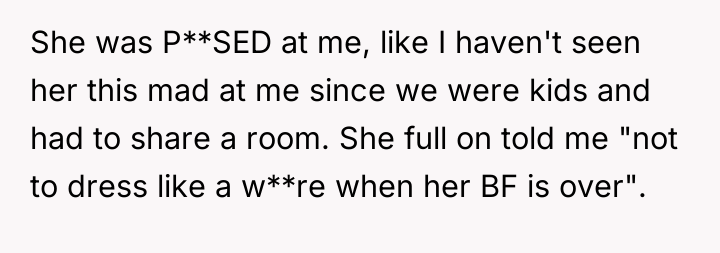 From a relational psychology standpoint, the sister's extreme anger suggests deeper insecurity regarding her boyfriend, as she is placing the onus of his gaze entirely on the OP's clothing rather than addressing his behavior directly with him. The OP’s response, while understandable in its defensiveness, escalated the conflict by mirroring aggressive language. A more constructive approach would have been to firmly state that while they respect the sister’s relationship, what they wear on their own property is non-negotiable, while perhaps suggesting the sister discuss the boyfriend's staring directly with him. While the OP's actions were understandable given the insult, future conflict resolution would benefit from clearer, calmer communication that separates personal choice from relational expectations.