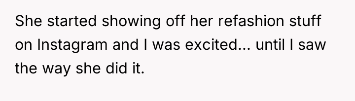 AITA for asking my friend to stop the way she shows off her “before” shots when she’s refashioning my clothes?
