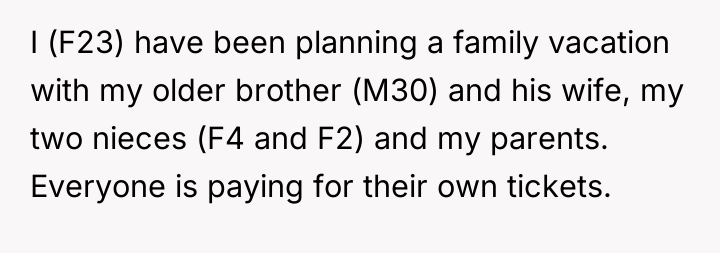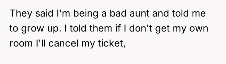 WIBTA if I cancelled my vacation ticket because my family wants me to share a room with my nieces?
