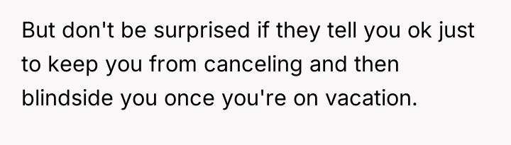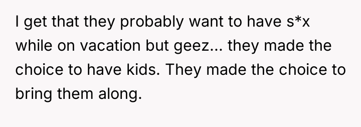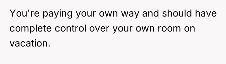 As renowned researcher Dr. Brené Brown explains, “Boundaries are the distance at which I can love you and me simultaneously.” This situation highlights a clear breach of implicit boundaries where the OP’s need for personal space during a shared vacation was overridden by the assumptions of the other adults.