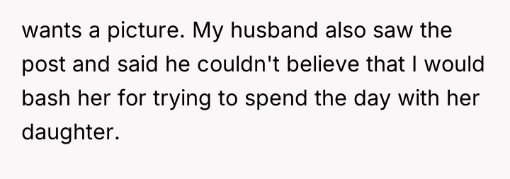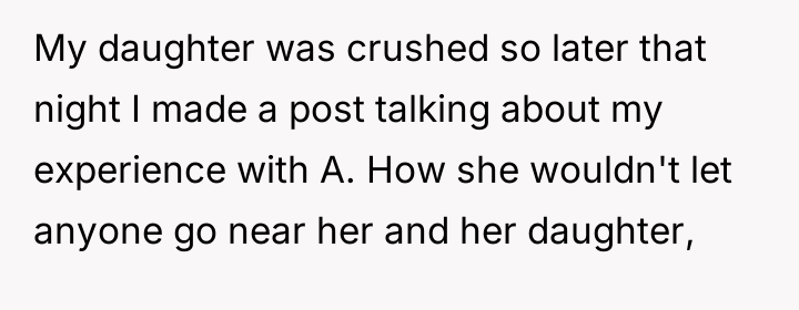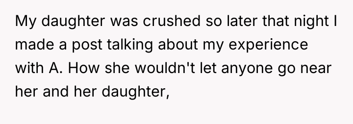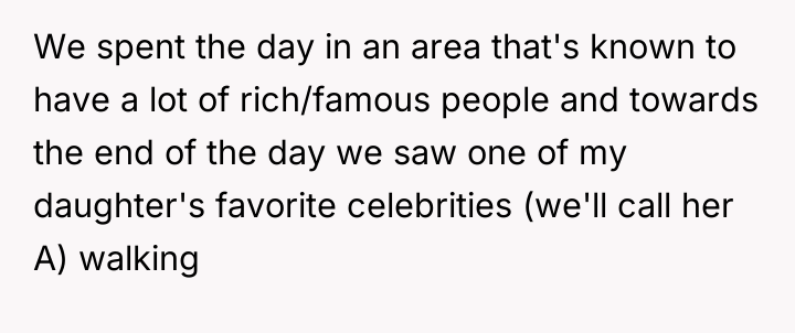 The original poster (OP) felt justified in sharing a negative experience online, believing the celebrity owed her daughter a brief interaction, which conflicts directly with the celebrity's desire to prioritize her child's birthday celebration.