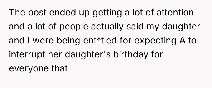 Was the OP justified in publicly criticizing a celebrity for prioritizing her child's private birthday time over a fan request, or were the OP and her daughter exhibiting entitlement by expecting a public figure to interrupt a personal family event?