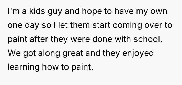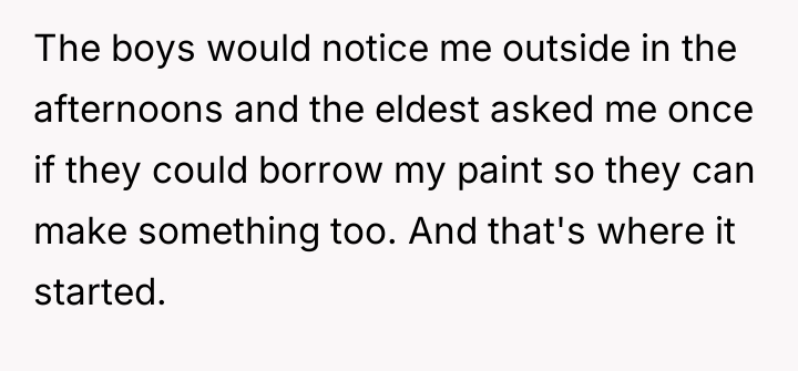 Inheriting his late uncle’s house brought more than just a new address for the 27-year-old man—it unearthed a forgotten pa*sion and an unexpected bond. What began as solitary afternoon painting sessions soon blossomed into a vibrant ritual with his young neighbors, two boys eager to learn and share their creativity. Through colors and brushes, a quiet friendship flourished, filling the void of loneliness with laughter and hope.