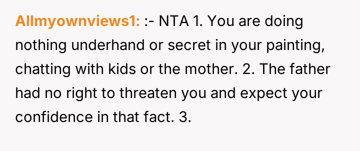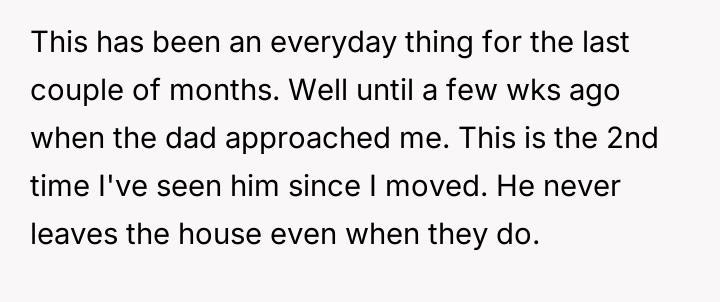 The original poster (OP) found himself in a difficult situation where a friendly neighborhood interaction escalated into a severe interpersonal conflict, driven by the neighbor's suspicion of inappropriate behavior. The OP's attempts to maintain peace by distancing himself from the children and later by attempting to clarify the situation with the mother ultimately backfired, leading to increased anger from the father and internal distress for the OP.