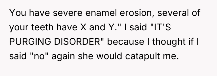 She carried a silent battle inside her, one that had been raging since she was a child. At 25, finally seeking help for her purging disorder—a painful, misunderstood shadow of bulimia—she faced not only her own fears but the harsh judgment of a world quick to dismiss and mislabel her struggle. Her heart pounded with fragile hope as she made a dental appointment, yearning for kindness in a place where vulnerability should be met with care.