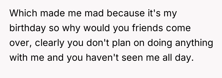 To handle this more effectively, the husband needed to set a firm boundary against his friends for the evening and dedicate the time entirely to his wife, even if it meant rescheduling his social event or offering an alternative arrangement for his friends to meet another day. For the OP, while her feelings are valid, asking for specific acknowledgment earlier in the day, rather than waiting for the evening, could have prevented some of the ambiguity. Moving forward, couples should establish clear, non-negotiable expectations for celebrating major personal events well in advance.