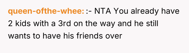 This situation highlights a significant breakdown in recognizing and respecting emotional needs within a partnership, particularly given the OP's advanced stage of pregnancy which often requires increased consideration. The husband's actions suggest a failure in proactive emotional labor and communication. By not only failing to plan anything for his wife's birthday but also immediately pushing to maintain his regular, intrusive social schedule (friends visiting until 6 AM), he demonstrated a lack of prioritization for his wife's emotional state. His subsequent attempt to offer a cake followed immediately by undermining that offer by pushing for his friends' visit shows poor conflict management; he seems to be seeking validation for his social plans rather than genuinely meeting his wife's needs. The OP's anger is a direct, appropriate response to feeling unseen and devalued on a day that traditionally warrants focused spousal attention.