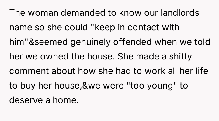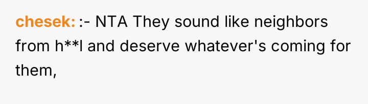 As renowned social psychologist Dr. Philip Zimbardo explains, “Power corrupts, and absolute power corrupts absolutely.” While this situation does not involve absolute power, the neighbors appear to be exercising petty, localized power derived from proximity and a sense of territorial entitlement, aimed at making the younger couple uncomfortable.