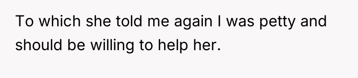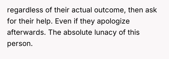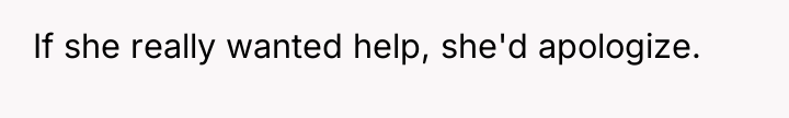 The OP's initial reaction to ignore or withdraw from the relationship after the critical comments was a natural defense mechanism against emotional harm. When the sister-in-law sought help without offering amends, the OP correctly asserted a boundary by declining. Professionally, the OP's action was appropriate in that she refused to offer service under conditions of ongoing disrespect. For future interactions, the OP should communicate clearly that while she values family ties, any request for assistance must first be preceded by a specific acknowledgment and apology for the previous hurtful accusations, thereby establishing a foundation of mutual respect rather than obligation.