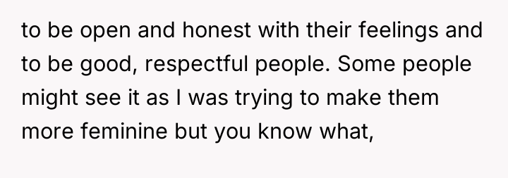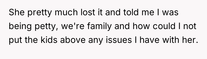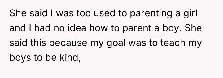The OP's approach—prioritizing kindness and emotional honesty—aligns with contemporary, attachment-based parenting models that seek to counter harmful masculine stereotypes often tied to emotional repression. The sister-in-law, conversely, appears to be operating from a more traditional, possibly fear-based framework, where perceived vulnerability equates to weakness, leading her to project her own anxieties about her children's behavior onto the OP. The sister-in-law's demand that the OP put the children above personal issues highlights a pattern of emotional coercion, framing the OP's boundary setting as 'pettiness' rather than necessary self-protection following an attack on her competence as a parent.