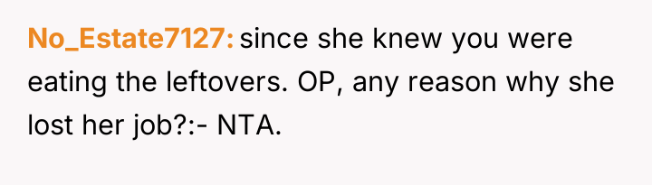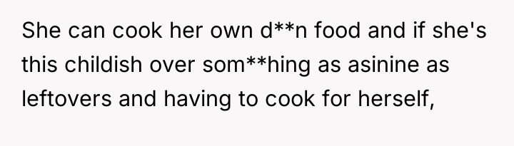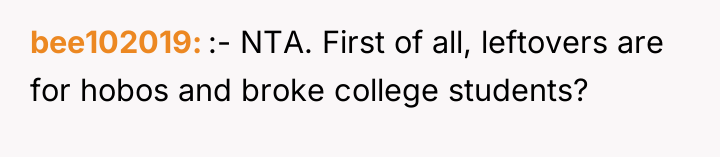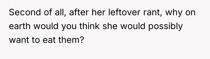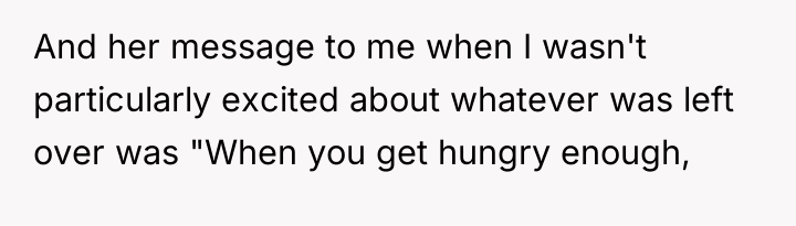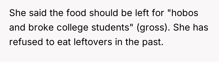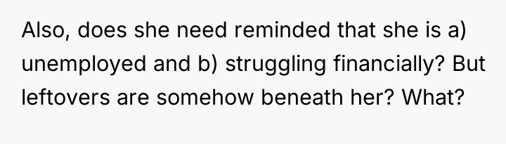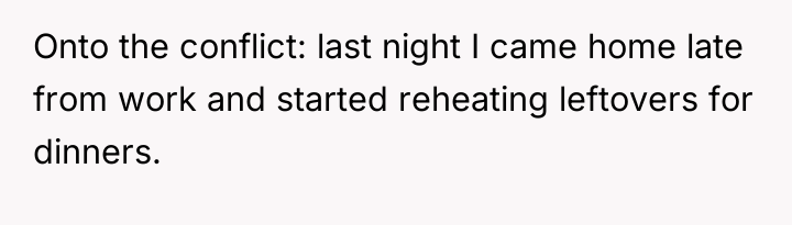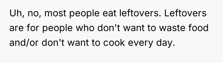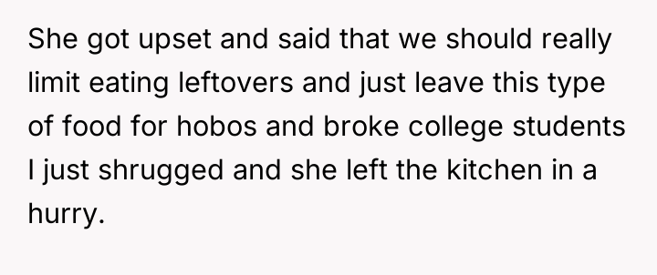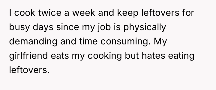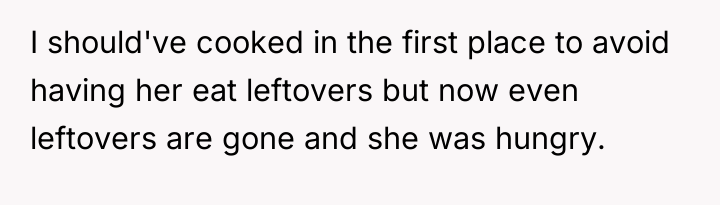 The OP’s actions were understandable given the circumstances, but the outcome was emotionally damaging. A constructive recommendation for the future involves immediate, non-judgmental communication about food security. Instead of relying on assumptions or reacting defensively during conflict, they must collaboratively establish a clear, agreed-upon system for meal planning and portioning that respects both the budget and the emotional needs of both parties, perhaps by designating one or two meals per week where fresh cooking is mandatory, regardless of leftovers.