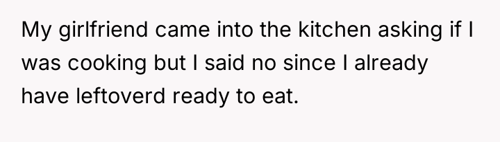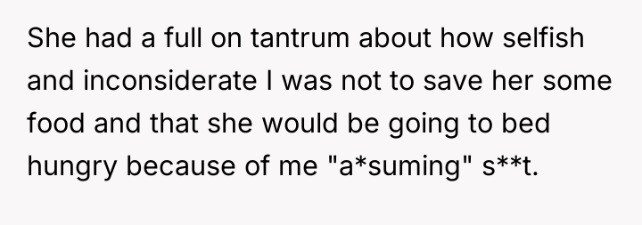 AITA for not saving dinner for my girlfriend and causing her to go to bed hungry?