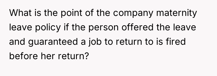 Manager Asks If Firing An Employee Returning From Maternity Leave Makes Them A Bad Manager