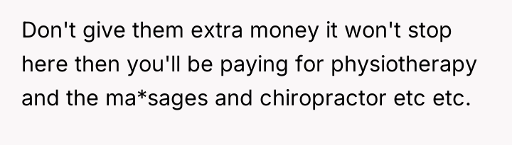 Is the original poster obligated, morally or otherwise, to continue funding surgeries related to an accident for which they were legally cleared and already compensated, or is their refusal to pay for the new procedure a necessary act of self-preservation against ongoing emotional and financial exploitation?