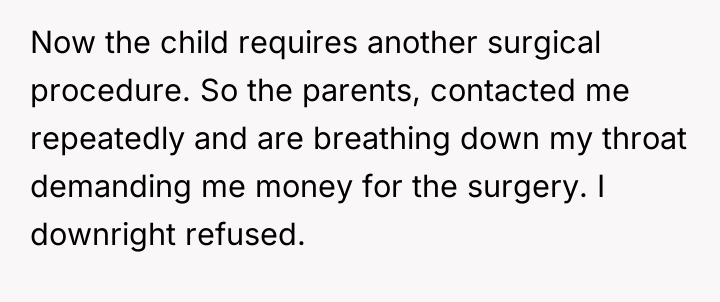 AITA for refusing to pay for a child's surgical procedure?