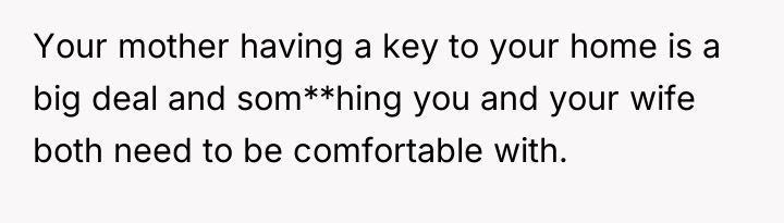 Redditor's Wife Upset After He Gave A Copy Of The Key To Their New House To His Mom