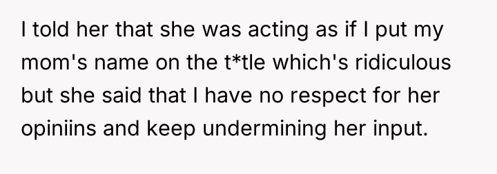 Given the established trust between the mother and wife, is the wife's insistence on removing the key primarily about protecting a perceived boundary regarding the house, or is it an expression of feeling unsupported in major decisions about the marital home, even if the property is solely in the husband's name?