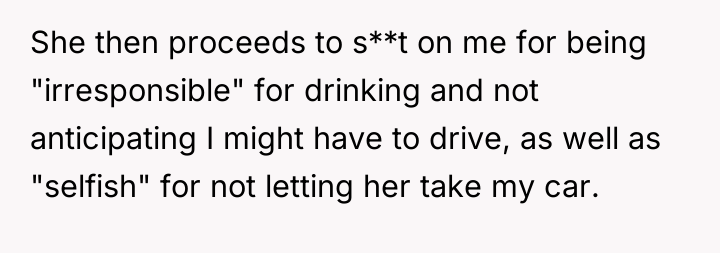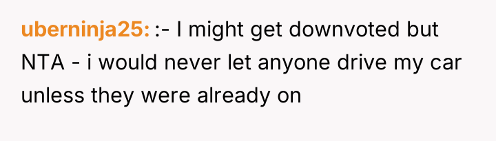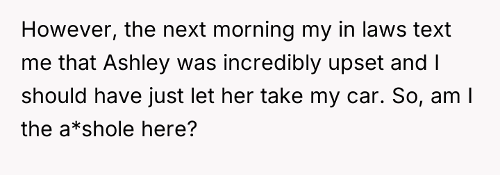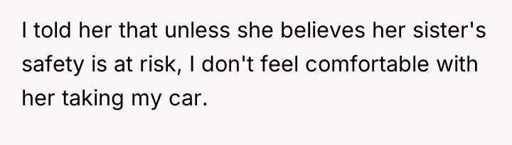 As renowned researcher Dr. Brené Brown explains, “Boundaries are the distance at which I can love you and me simultaneously.” In this scenario, the OP was attempting to establish a boundary regarding their valuable property and their ability to drive, yet the request created a conflict where honoring that boundary felt perceived as unloving or selfish by the other party.