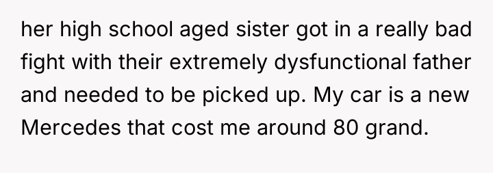 AITA for not letting a family member I barely know drive my expensive car in an "emergency"?