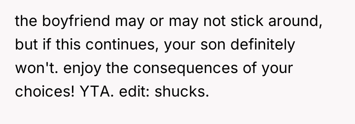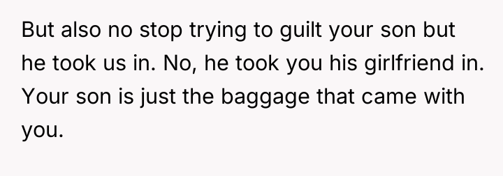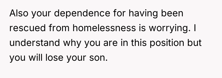The original poster (OP) finds herself in a difficult position, torn between supporting her biological son's need for privacy and boundaries, and respecting her boyfriend's authority as the homeowner who provided crucial shelter during a past crisis. The central conflict revolves around the refusal to allow the son to install a room lock, creating a perceived injustice where the OP ultimately sided with her boyfriend's final decision, leading to severe emotional distress and threats of leaving from her son.