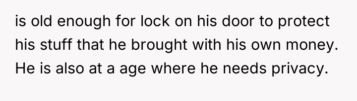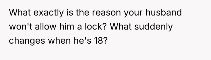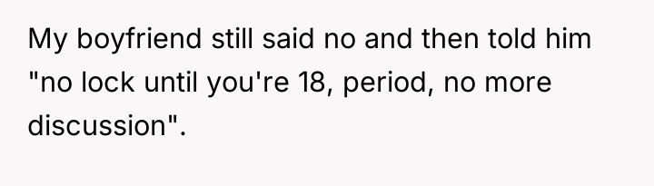 AITA for supporting my boyfriend when he told my son "no lock til you're 18"?