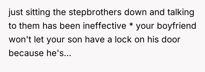 For four years, a mother has navigated the complex dynamics of a blended family, trying to protect her 16-year-old son from the constant invasion of his privacy by his younger stepbrothers. Despite her efforts and her boyfriend’s initial discipline, the younger boys continue to disrespect boundaries, leaving her son feeling powerless and unheard in his own home.