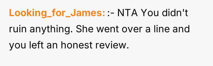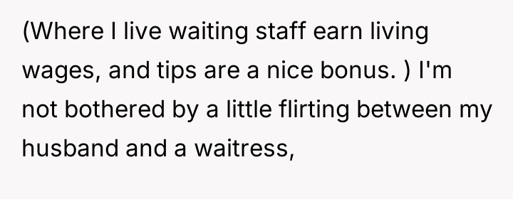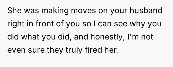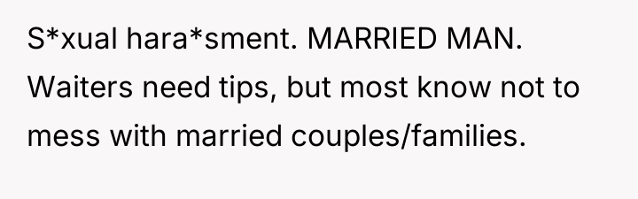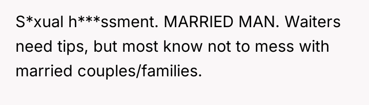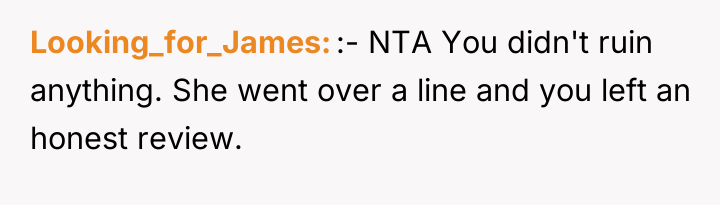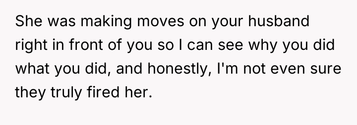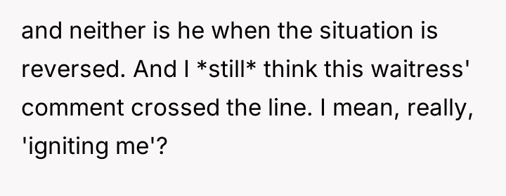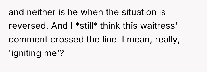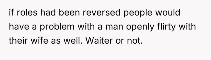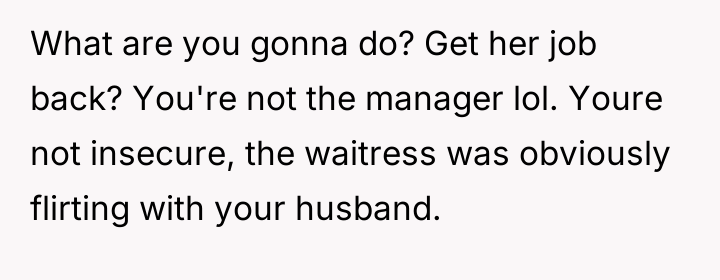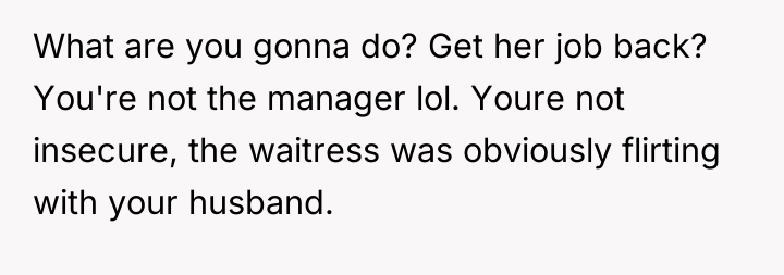 The original poster (OP) felt a clear violation of respect and boundaries when a waitress made overtly flirtatious comments toward her husband during a family celebration. This led the OP to take strong action by leaving a negative review, resulting in the waitress losing her job and facing significant personal consequences.