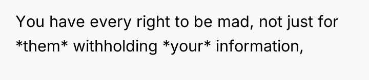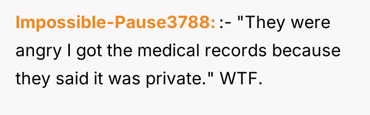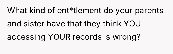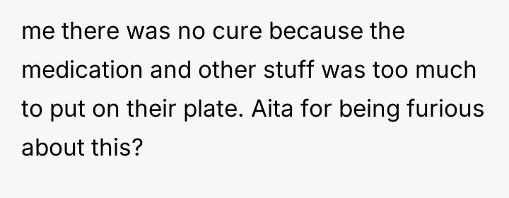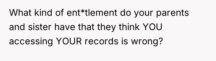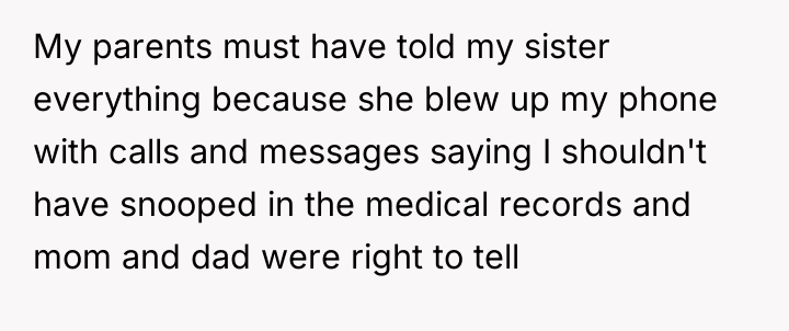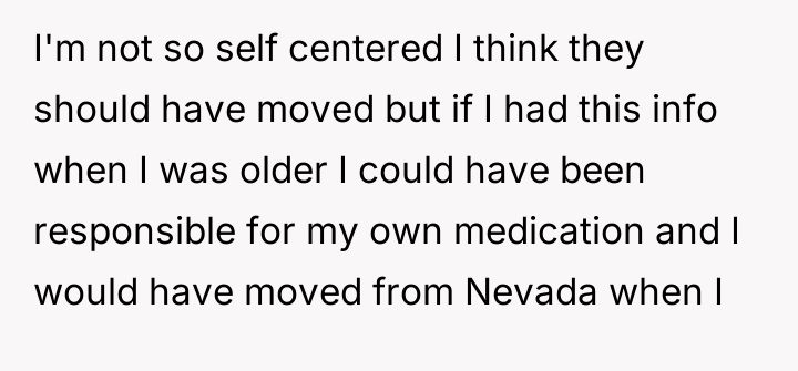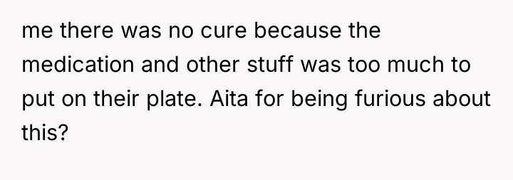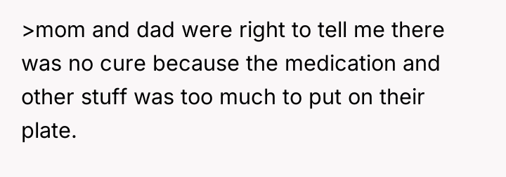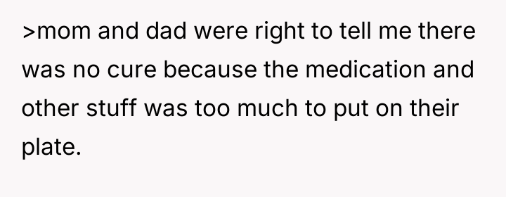 The parents' subsequent reaction—accusing the OP of snooping and reiterating that they were right to withhold the 'cure'—is a classic deflection tactic to avoid accountability for past negligence. The OP’s anger is entirely warranted, as this discovery invalidates years of perceived helplessness. To handle similar situations, the OP should prioritize clear, factual communication regarding the impact of past omissions, setting firm boundaries against gaslighting, and focusing on current health management rather than trying to force an apology for past choices.