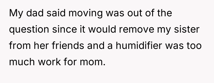 As renowned developmental psychologist Dr. Gabor Maté explains, “Illness is often a communication from the body that something in one's life is out of balance.” In this case, the OP’s chronic sinus issues served as a physical manifestation of an imbalance created by parental inaction, where convenience dictated the standard of care rather than the child's well-being.