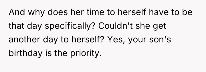 Did the OP appropriately manage the competing demands of their son's milestone, their wife's need for personal time, and the subsequent intervention by the father, or should the OP have prioritized their spouse's need for support and autonomy over the specific timing of the birthday plans?