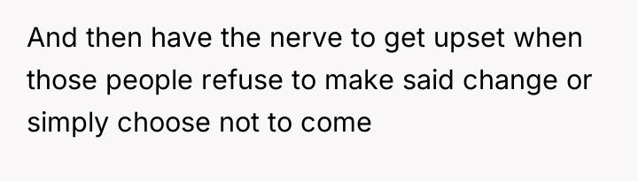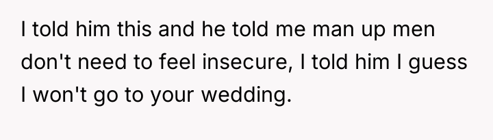 The OP’s subsequent decision to prioritize his boundary over attendance is understandable, given that the request was framed as a non-negotiable term by the hosts. Furthermore, the family's immediate pressure on the OP to conform indicates a pattern where individual needs are often overridden for the sake of group harmony or adherence to perceived norms, which can exacerbate feelings of being unheard. The OP’s actions were appropriate in defending a personal boundary when faced with an unreasonable imposition. Moving forward, the OP should firmly reiterate his reasons for non-attendance without engaging in arguments about 'manning up,' focusing instead on the necessity of maintaining his self-respect and comfort level.