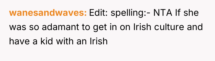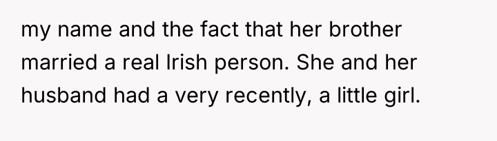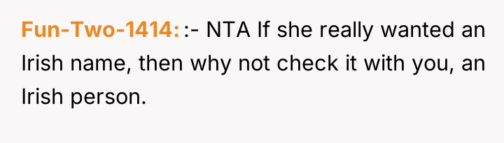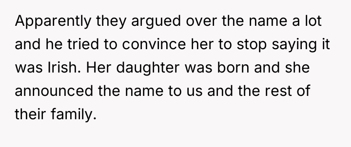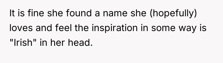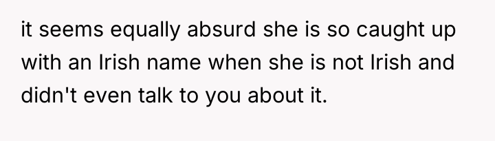 The situation involves a complex interplay of projection, cultural appropriation (even if well-intentioned), and boundary violations related to unsolicited advice. The sister-in-law (SIL) projected her desire for a connection to Irish culture onto her daughter, using the OP as the central figure for this identity. When the OP’s husband correctly questioned the name's origin, he initiated the conflict by challenging the premise of the SIL's narrative. The OP then entered the conflict by confirming the inaccuracies, moving from passive knowledge to active correction.