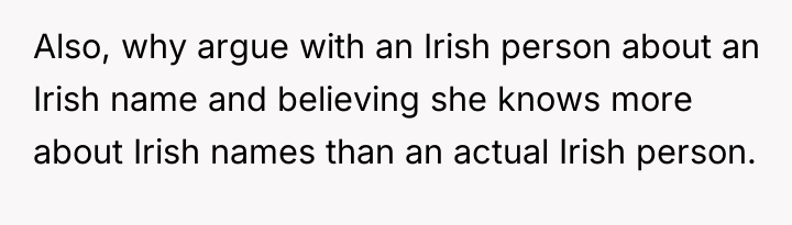 AITA for telling my sister in-law her daughters name isn't Irish?