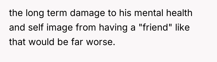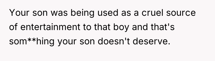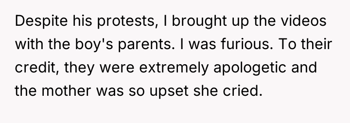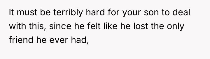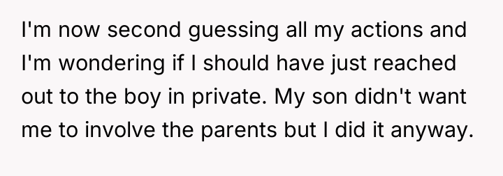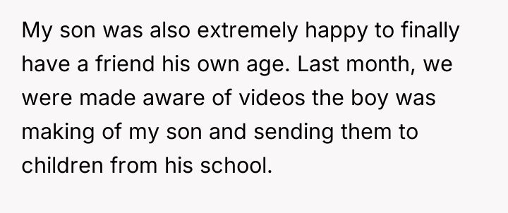 Did the parent violate their son's trust and agency by involving the neighbor's parents against his wishes, or was confronting the severe bullying, including hate speech, the necessary action to protect their vulnerable child? Was the resulting loss of friendship worth the establishment of necessary boundaries against abuse?