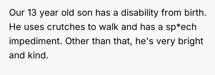 From the moment he was born, their 13-year-old son faced a world that often seemed unkind—his disability and speech impediment marking him as different, yet his bright mind and gentle heart shone through. Despite his brilliance and resilience, the cruel weight of bullying forced him into isolation, robbing him of the friendships every child deserves and leaving his younger sister as his only true companion.