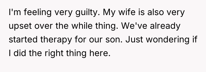 The parent is experiencing intense guilt and regret after intervening in their son's newly formed friendship, which was damaged by the neighbor boy's bullying and subsequent social rejection. The central conflict lies between the parent's protective instinct to address severe mistreatment and their son's desire to maintain the friendship, even at the cost of self-respect.